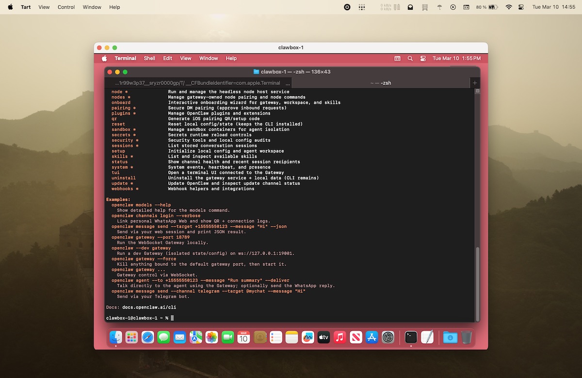 Then, run these commands to install ClawBox: